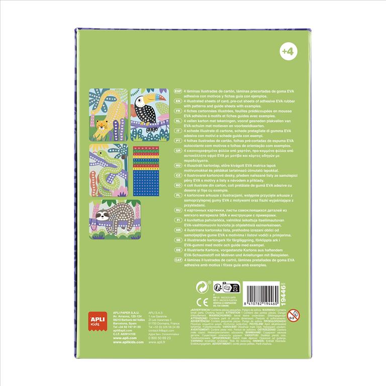 Game to make mosaics with EVA self-adhesive pre-cut foam in different colors and finishes. Jungle model.